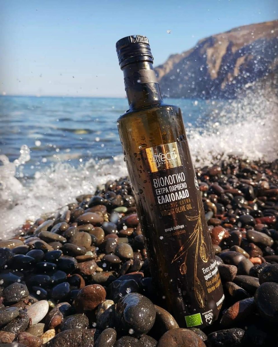 Ekologiczna oliwa extra virgin z trzech starych, endemicznych, greckich odmian oliwek pochodzących z jednego gaju oliwnego.